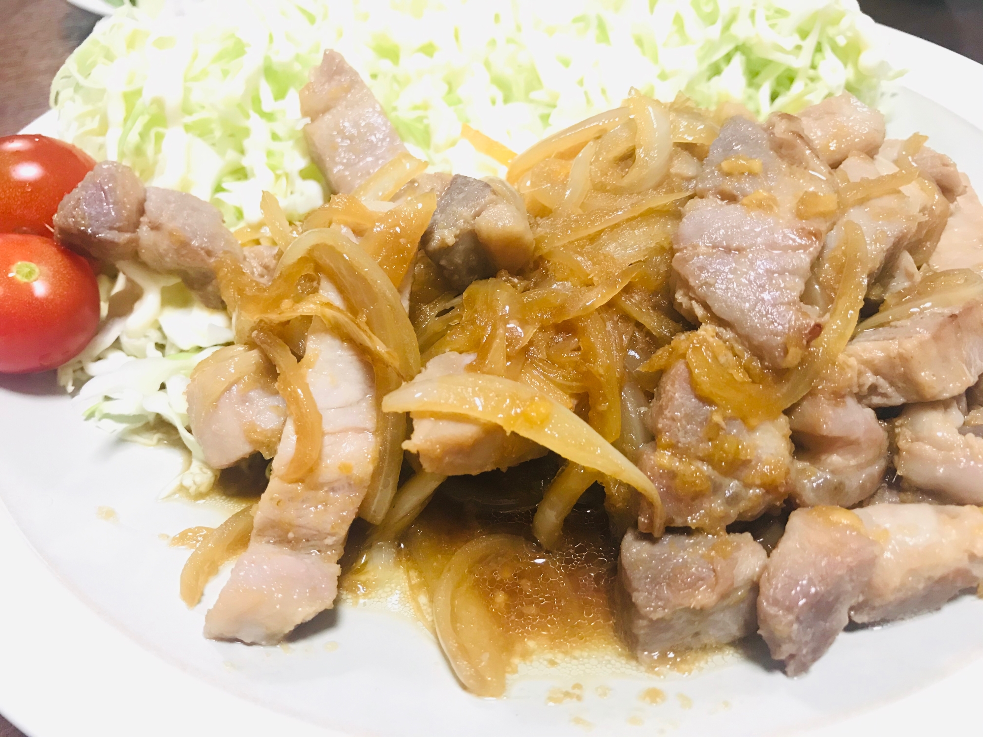 若干厚切り豚ロース肉と たっぷり玉ねぎの生姜焼き 野郎飯 適当レシピと美味い店